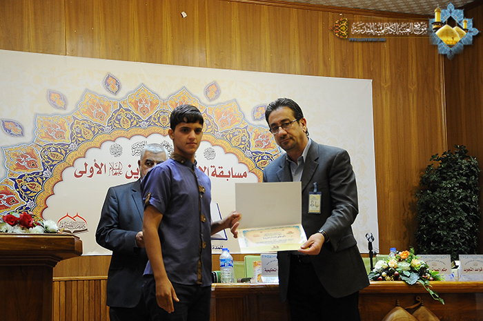 شهدت قاعة أسد الله الحمزة بن عبد المطلب "عليه السلام" في رحاب الصحن الكاظمي الشريف عصر الأحد 7 حزيران 2015 اختتام فعاليات مسابقة الإمامين الجوادين "عليهما السلام" الأولى لتلاوة القرآن الكريم التي أقامتها الأمانة العامة للعتبة الكاظمية المقدسة/ قسم الشؤون الفكرية والثقافية ـ دار القرآن الكريم، بحضور عضو مجلس الإدارة سماحة الشيخ عماد الكاظمي وعدد من رؤساء الأقسام والمهتمين بالشأن القرآني، حيث تبارى خلالها ثمان متسابقين من مجموع 35 مشاركاً وقد حصل على المركز الأول عثمان سعيد صالح بمعدل 83 درجة وفي المركز الثاني علي أحمد فلحي بمعدل 82 درجة وفي المركز الثالث فراس سعيد عباس بمعدل 81 درجة.