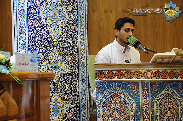 بعدها تحدث حكم الوقف والابتداء الأستاذ وسام مجيد مبيناً: بكل فخر واعتزاز أقف في رحاب الطهر والقداسة وتحت رايتي قبتي الإمامين الجوادين وأن أتشرف بمشارك إخوتي في اللجنة التحكيمية، وأشيد بكل الأصوات القرآنية التي اتحفتنا بهذا العبق القرآني، ودعواتي لهم بالتوفيق والسداد، وعليهم أن يعتنوا بمسألة الوقف والابتداء لأنه زينة القراءة القرآنية السليمة.