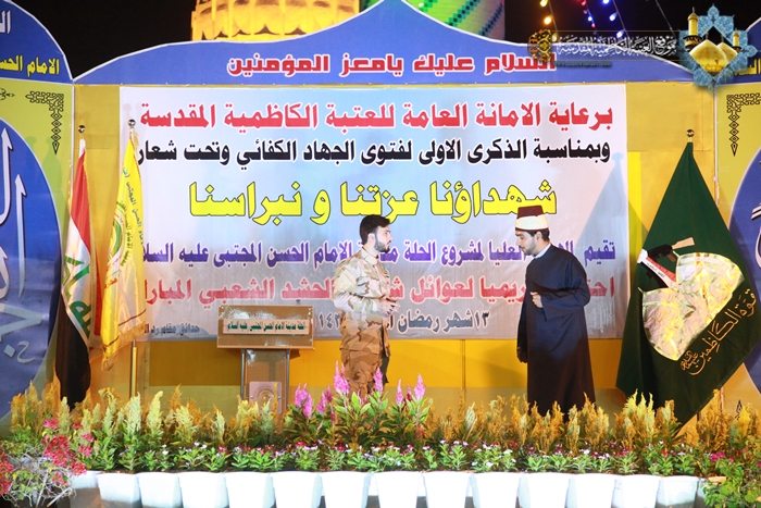 واختتم بتوزيع الشهادات التقديرية والهدايا على عوائل شهداء الحشد الشعبي المبارك . ورافقت تلك الفعاليات إقامة معرض للصور الفوتوغرافية بيّن دور العتبة الكاظمية المقدسة وجهودها المباركة ودعمها المتواصل لفتوى الجهاد الكفائي، وزياراتها الميدانية لسوح القتال والقطعات العسكرية وتوثيق الانتصارات، فضلاً عن زيارة لعوائل شهداء الحشد الشعبي والنازحين وتفقد أحوالهم.