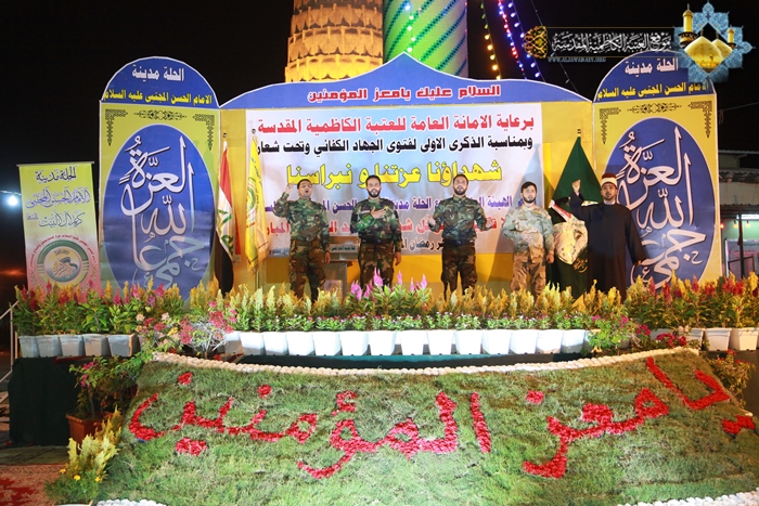 أقامت الأمانة العامة للعتبة الكاظمية المقدسة احتفالاً تكريمياً لعوائل شهداء الحشد الشعبي بالتعاون مع الهيئة العليا لمشروع الحلة مدينة الإمام الحسن المجتبى "عليه السلام"، في الثالث عشر من شهر رمضان المبارك 1436هـ الموافق 1/7/2015م ، والمُقام في مزار ردّ الشمس بمحافظة بابل تحت شعار: (شهداؤنا عزتنا ونبراسنا)، والمتزامن مع ذكرى الولادة الميمونة لحفيد رسول الله "صلى الله عليه وآله" ثاني أئمة الهدى الإمام الحسن المجتبى "عليه السلام"، والذكرى السنوية الأولى لإعلان فتوى الجهاد الكفائي التي أطلقها سماحة المرجع الديني الأعلى آية الله العظمى السيد علي الحسيني السيستاني "دام ظله الوارف " للدفاع عن العراق والمقدسات. وتضمنت فعاليات الحفل تلاوة آيات بينات من كتاب الله العزيز شنف بها قارئ العتبة السيد عبد الكريم قاسم أسماع الحاضرين، ومراسم لرفع راية الإمامين الجوادين "عليهما السلام" وقراءة إنشودة الفردوس ثم تلتها محاضرة دينية لسماحة الشيخ عماد الكاظمي عضو مجلس إدارة العتبة المقدسة، تطرق فيها إلى جوانب مهمة في حياة الإمام الحسن "عليه السلام"، فضلاً عن أهمية الزيارة والتشرف بالتواصل واللقاء مع عوائل الشهداء الحشد الشعبي، حيث أعد سماحته هذا الأمر هو تقرباً إلى الله تعالى، لأن هؤلاء الثلة المؤمنة قدمت أعز ما تملك وهم فلذات أكبادهم، بل وضحوا بالغالي والنفيس تلبية لنداء المرجعية الرشيدة والحفاظ على تراب الوطن والمقدسات من دنس الأعداء التكفيريين ومن لف لفهم. كما كانت هناك مشاركة لشاعر العتبة الكاظمية المقدسة الأستاذ رياض عبد الغني الكاظمي حيث القى خلالها قصيدة شعرية رائعة أفاضت بذكر فضائل ومحاسن صاحب الذكرى الإمام الحسن "عليه السلام" وأبيات أخرى مجدت انتصارات الحشد الشعبي وهو يخوض أروع الملاحم البطولية في معارك تحرير أرض العراق المغتصبة من قبل قوى الإرهاب التكفيري. وتخلل المهرجان عرض مسرحي بعنوان " لقاء الأبرار " والذي قام بتجسيد أدواره نخبة طيبة من خَدَمَة الإمامين الجوادين "عليهما السلام"، فضلاً عن مشاركة فرقة إنشاد الجوادين بالموشحات الإسلامية.