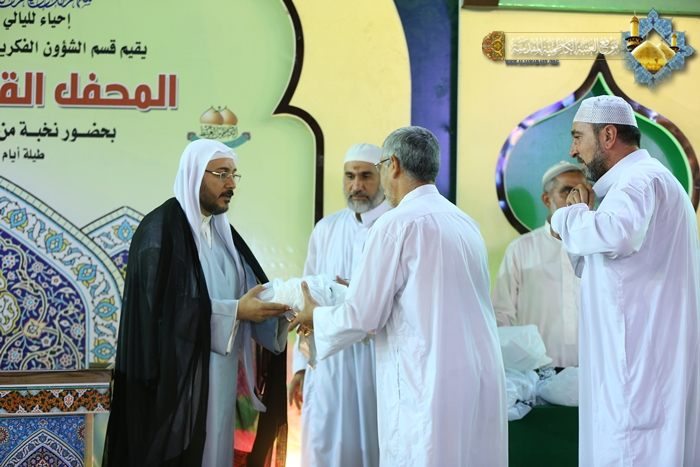 تزامناً مع قرب اختتام الجلسات القرآنية المقامة بالصحن الكاظمي الشريف في شهر رمضان المبارك، أقامت الأمانة العامة للعتبة الكاظمية المقدسة / قسم الشؤون الفكرية والثقافية ـ دار القرآن الكريم، يوم الأربعاء 15/7/2015م حفل تكريم المشاركين في الجلسات القرآنية الرمضانية والختمات القرآنية والجلسات التعليمية والأساتذة والقراء المشرفين والقائمين عليها، بحضور الأمين العام للعتبة الكاظمية المقدسة الأستاذ الدكتور جمال الدباغ وعدد من أعضاء مجلس الإدارة و قارئ جمهورية مصر العربية الشيخ أحمد عبد الحي وعدد من الاساتذة والمهتمين بالشأن القرآني وجمع غفير من زائري الإمامين الجوادين "عليهما السلام".