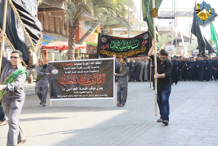 تجددت أحزان آل بيت رسول الله "عليهم السلام" باستشهاد سيد شباب أهل الجنة الإمام الحسين وأبنائه وأصحابه "عليهم السلام" في ملحمة هزت الضمير الإنساني ورسمت لوحة أبطالها صفوة الخلق. وإحياءً لهذه المناسبة الأليمة, نظّم خدام العتبة الكاظمية المقدسة مسيرة ولائية حاشدة تحفهم رايات الحزن والأسى بهذا المصاب الجلل, انطلقت من حسينية آل الصدر متجهة صوب المشهد الكاظمي الشريف, بحضور الأمين العام للعتبة الكاظمية المقدسة أ. د جمال عبد الرسول الدباغ وعدد من أعضاء مجلس إدارة العتبة المقدسة, حيث صدحت حناجر المشاركين بالردات والمستهلات التي عبرت عن الولاء المطلق لسبط الرسول الأكرم "صلى الله عليه وآله" وسيرته المباركة ودوره الإصلاحي وتضحيته من أجل إحقاق الحق وإقامة العدل والدفاع عن القيم الإسلامية النبيلة. بعدها التأمت الحشود المعزية في مجلس العزاء والتأبين في موكب خدام الإمامين الجوادين "عليهما السلام" في صحن باب المراد، وفي ختامها توجه المعزون بالدعاء إلى الباري القدير أن يحفظ العراق وشعبه وزائري الأئمة الأطهار "عليهم السلام" من كل سوء، وبالنصر المؤيد لقوات الحشد الشعبي المقدس وقواتنا الأمنية الباسلة وهي تخوض معارك الشرف للدفاع عن العراق ومقدساته.