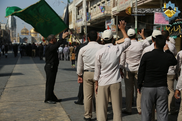 خدام العتبة الكاظمية المقدسة يجددون العهد لأبيّ الضيم الإمام الحسين "عليه السلام" في يوم التاسع من محرم الحرام