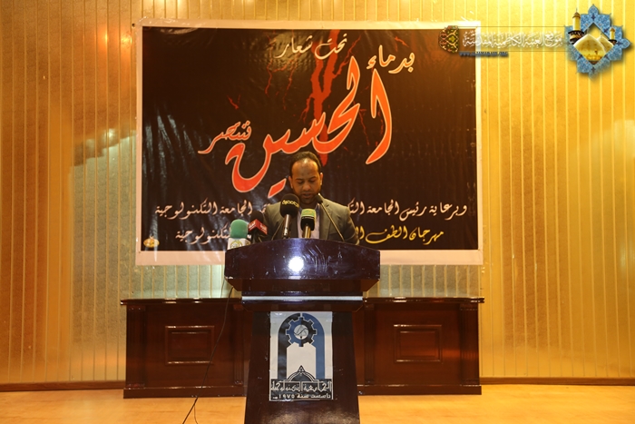 ثورة الإمام الحسين "عليه السلام" عطاء مستمر ودائم، في مختلف العصور والدهور والأجيال، فهي بمثابة المشعل الذي ينير رسالة الحق نحو الأهداف الإنسانية السامية، فكان تواصل الأمانة العامة للعتبة الكاظمية المقدسة مع المؤسسة الجامعية له من الثمار لأجل نشر وتوطيد مبادئ الثورة الإصلاحية التي خرج من أجلها الإمام الحسين "عليه السلام" لدى تلك الشريحة الاجتماعية، إذ شاركت العتبة الكاظمية المقدسة في مهرجان الطف الرابع الذي أقامته الجامعة التكنلوجية يوم الخميس 19/11/2015م تحت شعار : بدماء الإمام الحسين "عليه السلام" ننتصر والذي حضرته العديد من الشخصيات العلمية والأكاديمية والاجتماعية ونخبة من طلبة الجامعة التكنلوجية، حيث شهد المهرجان إلقاء الكلمات والقصائد الشعرية في حب الإمام الحسين "عليه السلام"، كما تضمن مشاركة لفرقة الجوادين الإنشادية بمجموعة من القصائد الولائية للإمام الحسين "عليه السلام" التي جسدت قضية الشهيد والشهادة، وفي اختتام فعاليات المهرجان تسلم وفد العتبة الكاظمية المقدسة درع المشاركة في هذه التظاهرة الثقافية .