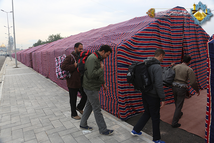 تشهد العتبة الكاظمية المقدسة توافد قوافل الزائرين الحاشدة من كلّ فج عميق على شكل مسيرات كبيرة، مؤكدة إيمانها وولاءها للمسيرة الحسينية الخالدة التي أثبتت للعالم بأن العطاء والتضحيات في سبيل الله والإنسانية تبقى خالدة ومستمرة لا تحول دونها الأزمان، لذا وجهت الأمانة العامة للعتبة الكاظمية المقدسة بنصب المخيمات للجموع الزائرة التي اتخذت من مرقدي الإمامين الجوادين "عليهما السلام " محطة انطلاق للمسير نحو كربلاء المقدسة. حيث شرعت الملاكات الفنية في الأقسام الهندسية بنصب مجموعة المخيمات لإيواء ومبيت الزائرين الكرام الوافدين من داخل العراق وخارجه حيث شملت صحن الإمام الباقر "عليه السلام" والطابق الأرضي له، ومسقفات الصحن الكاظمي الشريف من الجهة الشرقية والغربية ومخيمات أخرى في شارع أمير المؤمنين علي بن أبي طالب "عليه السلام" وشارع الإمام صاحب الزمان "عجل الله فرجه الشريف" فضلاً عن فتح دور الضيافة التابعة للعتبة المقدسة والتعاون والتنسيق مع الحسينيات والجوامع في مدينة الكاظمية المقدسةمع توفير وجبات الطعام لهم صباحاً وظهراً ومساءً، وتسعى الأمانة العامة للعتبة الكاظمية المقدسة إلى توفير سبل الراحة وخدمات الضيافة كافة للوافدين بعد تحملهم عناء الطريق لإحياء زيارة أربعينية الإمام الحسين "عليه السلام".