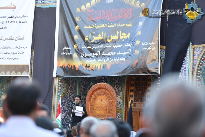 تجددت أحزان أهل البيت "عليهم السلام " في يوم الأربعين وعودة الركب الزينبي إلى كربلاء، فقد ارتبط ذلك اليوم بضمير العالم أجمع وهزّ النفوس وأدمع المُقل وترك بصمات مشرقة في صفحات التاريخ حين تحول الأسر إلى نصر . شهدت رحاب الصحن الكاظمي الشريف في العشرين من شهر صفر المظفر 1437هـ برنامجاً عزائياً خاصاً استمع المعزون فيه إلى القصة الكاملة لمسيرة الركب الزينبي وما جرى على عيالات آل بيت رسول الله "صلى الله عليه وآله" من سبي وضيم ومصائب عظيمة. وتواصل المجلس بمشاركة الرادود الحسيني "كرار الكاظمي" وقراءته مجموعة من المراثي التي استذكر خلالها نهضة سيد الشهداء "عليه السلام" التي بقيت حيّة إلى يومنا هذا تنبض بالسمو والعطاء.