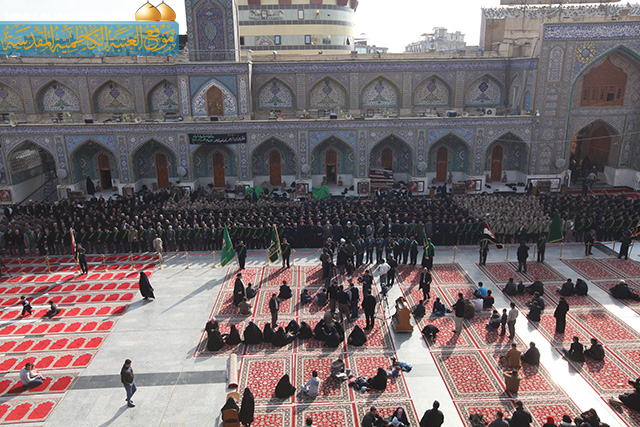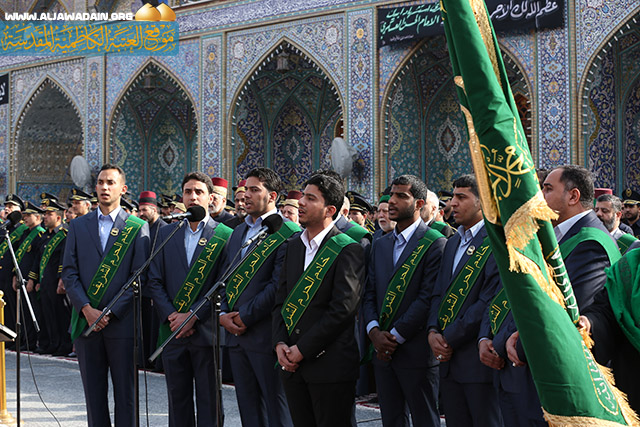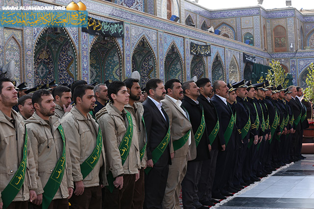 إيماناً منها بتجديد العهد والولاء للإمامين الجوادين(عليهما السلام) صدحت حناجر خدمة الإمامين(عليهما السلام) المتمثلة بأمينها العام الحاج فاضل الانباري وأعضاء مجلس ادارة العتبة ورؤساء الاقسام والشعب وكوادر خدمتها كافة بقراءة انشودة العتبة, سبقتها تلاوة معطرة بأيٍ من الذكر الحكيم وزيارة الإمامين الهمامين موسى بن جعفر الكاظم ومحمد بن علي الجواد (عليهما السلام) اعقبها دعاء الفرج, ورفع الحاضرون اكف الدعاء لله سبحانه وتعالى ان يحفظ بلدنا العزيز ويعم فيه الأمن والأمان ببركة الصلاة على النبي (صلى الله عليه وآله وسلم) وأهل بيته الطيبين الطاهرين.