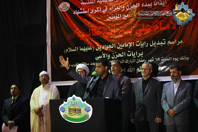 استبدال رايتي الامامين الجوادين(ع) بمناسبة ذكرى استشهاد أمير المؤمنين علي بن ابي طالب -ع
