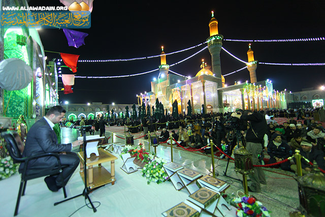 بمناسبة ذكرى ولادة البشير النذير والصادق الامين النبي محمد(ص) وولادة حفيد النبوة وسليل الإمامة سادس أئمة الهدى الإمام جعفر بن محمد الصادق(ع), اقامت الامانة العامة للعتبة الكاظمية المقدسة محفلاً قرآنياً بهذه الايام المباركة تحت شعار(محمد رسول الله(ص) عنوان للسلام والوحدة والتألف) وتستمر فعاليات هذا الحفل للفترة( 12 ــ 17)ربيع الأول 1434هـ في رحاب الصحن الكاظمي الشريف. تخللته تلاوات قرآنية معطرة تنسمت بها أجواء الصحن الكاظمي الشريف بحضور السيد(موسى الأعرجي) نائب الأمين العام للعتبة الكاظمية المقدسة, وسماحة الشيخ(مكي شطيط الطائي) عضو مجلس إدارة العتبة ورئيس قسم الثقافة والإعلام والحاج(أموري السلامي) رئيس قسم الشؤون الخدمية ووفود المؤسسات القرآنية في بغداد والمحافظات العراقية وشارك في المحفل المبارك نخبة من كبار القراء العراقيين الذين شنفوا باصواتهم المتميزة أسماع الحاضرين ومنهم القارئ(عمار العبيدي) الحاصل على المركز الأول في مسابقة المؤسسة القرآنية العراقية والقارئ(احمد جاسم الكوفي) من العتبة العلوية المقدسة والقارئ(سجاد احمد) من العتبة الكاظمية المقدسة كما تخلل المحفل بعض الموشحات الدينية لفرقة الجوادين الإنشادية, ومشاركة للمنشد (حسين الياخندي) ببعض الابتهالات والمناقب النبوية ومديح الرسول(ص) وعترته الطاهرة(ع), وتضمن المحفل فقرة الاسئلة القرآنية والإجابة الآنية عليها وتوزيع الهدايا على المشاركين , بحضور الجموع الغفيرة من زائري الامامين الجوادين(ع), التي توافدت على الصحن الكاظمي الشريف لتنهل من فيوضات الرحمة الإلهية لنيل الأجر والثواب .