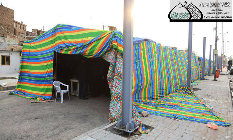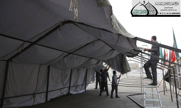 انتهت الملاكات الخدمية في العتبة الكاظمية المقدسة من نصب المخيمات والمحطات الكبيرة في الشوارع المحيطة بالصحن الشريف، والتي ستعمل على مدار الساعة كأماكن خزنٍ جديدة واسعة ذات طاقة استيعابية عالية لحفظ حقائب وأمانات الزائرين الوافدين إلى العتبة المقدسة لإحياء أربعينية الإمام الحسين "عليه السلام" في العشرين من صفر المظفّر.