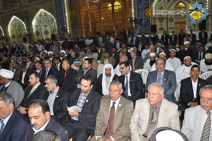 شارك خَدَمَة العتبة الكاظمية المقدسة في حفل افتتاح مهرجان الغدير العالمي الثاني الذي أقيم في رحاب الصحن العلوي الشريف, برعاية الأمانة العامة للعتبة العلوية المقدسة للفترة من24ـ26 ذي الحجة 1434هـ المصادف30/10-1/11-2013م, وتضافرت الجهود المباركة لانطلاق فعاليات هذا المهرجان تزامناً مع ذكرى عيد الغدير الأغر, والذي يعكس الصورة الحقيقية للعتبات المقدسة ومدى الاهتمام الذي توليه العتبة العلوية المقدسة من أجل الانفتاح والتواصل مع المؤسسات الفكرية والثقافية والإعلامية ومد جسور التعاون في نشر فكر وعقيدة آل البيت(عليهم السلام), حيث شارك فيه (150) شخصية دينية وعلمية وثقافية و(30) دولة, وكان للعتبة الكاظمية المقدسة حضور فاعل ومتميز في هذه التظاهرة الثقافية والعلمية الكبيرة تمثلت بحضور الأمين العام للعتبة الكاظمية المقدسة أ. د(جمال الدباغ) وعدد من أعضاء مجلس إدارة العتبة المقدسة، في حفل افتتاح المهرجان، وكذلك العديد من الشخصيات العلمية والفكرية الأدبية والسياسية من داخل العراق وخارجه. كما شارك قسم الشؤون الفكرية والثقافية في العتبة الكاظمية المقدسة في المهرجان ببحوثٍ علميةٍ كان من بينها (بعد رحيل المصطفى) لسماحة الشيخ (نجم الدراجي) حيث سلط الضوء على الأحداث بعد استشهاد رسول الله(صلى الله عليه وآله)وعدم التزام بعض المسلمين بمضمون الغدير, والآخر(مؤاخاة الوصي) لسماحة الشيخ (طه العبيدي) تناول فيه مكانة المؤاخاة وأسبابها وآثارها فضلاً عن مشاركة مكتبة الجوادين العامة متمثلة بالسيد اياد الشهرستاني والشيخ منير الكاظمي .. وعلى هامش فعاليات المهرجان افتتح معرض للكتاب, ومعرض الصور الفوتوغرافية, ومعرض الخط والنقش على الكرستال, ومعرض المصاحف والمخطوطات النادرة حيث قامَ بافتتاحه الأمين العام للعتبة الكاظمية المقدسة أ. د(جمال الدباغ) برفقة سماحة الشيخ(ضياء الدين زين الدين) الأمين العام للعتبة العلوية المقدسة وضم المعرض مقتنيات خزانة العتبة العلوية المقدسة والتي يمتد عمر بعضها إلى أكثر من ثلاثة عشر قرنا ومجموعة من المصاحف الشريفة بأشكال وأحجام وأعمار مختلفة فضلاً عن المخطوطات النادرة والزخارف الإسلامية ومحامل القرآن والجلود المستخدمة في التغليف .