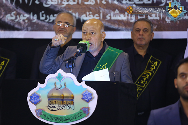تعتبر ذكرى عاشوراء من الأحداث الكبرى المهمة في التاريخ الإسلامي والتي هزت الضمير الإنساني وغيرت مجرى التاريخ بملحمتها البطولية, لما تحمله في طياتها من قيمٍ ومعانٍ سامية لها وقع كبير في نفوس المسلمين, وبها أضحى الإمام الحسين (عليه السلام) المثل الأعلى للفداء والتضحية ونبراساً للحق، ومناراً للهدى تستضيء به الأُمة الإسلامية, وللإعلان عن بدء موسم الحزن والعزاء في ذكرى استشهاد أبيّ الضيم الإمام الحسين وأهل بيته الأطهار وأصحابه الأخيار (عليهم السلام), أقيمت في رحاب الصحن الكاظمي الشريف في الليلة الأولى من شهر محرم الحرام 1435هـ المراسم السنوية لاستبدال الرايات الخضراء التي تخفق فوق القبتين الشامختين للإمامين الجوادين (عليهما السلام) برايات الحزن السوداء التي تزامنت مع رفعها فوق قباب العتبات المقدسة العلوية والحسينية والعباسية, مواساة للرسول الأكرم(صلى الله عيه وآله) وتجديداً للعهد والولاء للعترة الطاهرة(عليهم السلام) بمصاب سيد شباب أهل الجنة الإمام الحسين(عليه السلام) بحضور الأمين العام للعتبة الكاظمية المقدسة أ.د (جمال الدباغ) وأعضاء مجلس الإدارة, وخَدَمَة الإمامين الجوادين(عليهما السلام) ومشاركة العديد من الشخصيات الدينية والاجتماعية وجمع غفير من أهالي مدينة الكاظمية المقدسة وزائري الإمامين الجوادين(عليهما السلام), استهلت المراسم بتلاوة آيٍ من كتاب الله العزيز شنف بها القارئ(منير عاشور) أسماع الحاضرين, بعدها كلمة الأمانة العامة للعتبة الكاظمية المقدسة ألقاها أمينها العام أ.د (جمال الدباغ) جاء فيها:(نقف اليوم وإياكم وقفة تحدٍ وإصرار على مواصلة الدرب وحثّ الخطى على طريق سيد الشهداء(عليه السلام) واستنكار الجريمة البشعة التي أدمت جبين التاريخ بما ارتكبه الأمويون بحقّ عترة رسول الله(صلى الله عليه وآله) الجريمة التي أبكت ملائكة السماء واهتزَ لها عرش الرحمن جل وعلا.