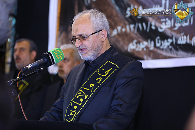 وأضاف: (ينبغي أن نتعلم منه كما تعلم العظماء والحكماء وقادة الأمم نحو التغيير والإصلاح الدروس من ثورته (عليه السلام) ونهضته في طلب الإصلاح, وليكن شعارنا في إحياء مراسم عاشوراء وممارسة الشعائر بأنواعها إحياءً لمظلوميته واستنكاراً لكل مظاهر الظلم والقهر والاستبداد في الأرض, وان نستقي منها العبرة في التغيير والنهوض والإعداد الرسالي للأمة والمجتمع وتربية الأجيال التربية الإسلامية الصحيحة).