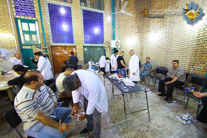تزامنا مع الذكرى الأليمة لاستشهاد الإمام الحسين (عليه السلام ) ذلك اليوم الذي سالت فيه الدماء الزكية دفاعاً عن الحق لتكون صرخة بوجه الظلم والطغيان, انطلقت في مدينة الكاظمية المقدسة شعيرة التبرع بالدم وللسنة العاشرة على التوالي التي يقيمها المركز الوطني لنقل الدم بالتعاون والتنسيق مع مسجد آل ياسين ومستوصف الحوراء الطبي تحت شعار: (دم الحسين أحيا الإنسانية .. فتبرع بالدم لتحيي إنساناً), حيث توجهت حشود الموالين ملبين ذلك النداء ودعمهم لهذه الحملة المباركة وتفاعلهم مع هذا المشروع لما له من بعد إنساني وحس إيماني. وبهذه المناسبة كان لنا لقاء مع مدير المركز الوطني لنقل الدم د(يعقوب عبد الواحد الموسوي) تحدث قائلاً: عظم الله أجورنا وأجوركم بمصاب أبي عبد الله الحسين(عليه السلام), بالتنسيق مع وزارة الصحة, دائرة العمليات الطبية, والمركز الوطني لنقل الدم وبالتعاون مع مسجد آل ياسين والمساجد والحسينيات الأخرى في مدينة الكاظمية المقدسة تم تنظيم الحملة الوطنية الحسينية بالتبرع بالدم, حيث قدمَ خَدَمَة مسجد آل ياسين لفريق العمل جميع مستلزمات الدعم اللوجستي, ومنذ عام 2004م وفي ذلك العام حصلنا على( 2000) قنينة دم وبدأ العدد يتصاعد حتى يصل في هذه الزيارة إلى أكثر( 5000) قنينة, وما يميزنا عن السنوات السابقة حيث هيئنا في هذا العام أجهزة لفحص المتبرع والتأكد من سلامته وقدرته على التبرع. وأضاف قائلاً: أن حملات التبرع بالدم أصبحت اليوم جزءاً من الشعائر الحسينية, لأن قنينة الدم الواحدة تنقذ أربعة أشخاص حيث يستخرج من هذه القنينة: الدم, ومادة البلازما, والصفائح الدموية, ومادة مانع التخثر,