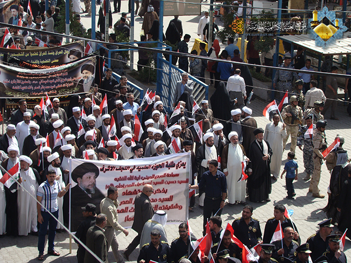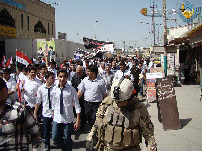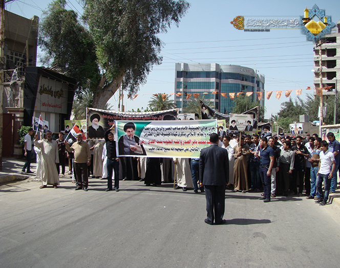 إحياءً للذكرى الأليمة الرابعة والثلاثين لاستشهاد المفكر الإسلامي السيد (محمد باقر الصدر) قدس سره، الذي ساهم في تجديد الحركة الإسلامية من خلال مدرسته المعطاء الفكرية والمعرفية والعلمية والعقائدية والجهادية، ودوره الكبير في دفاعه عن حقوق المستضعفين، وتخليداً لهذه التضحيات شاركت الأمانة العامة للعتبة الكاظمية المقدسة صباح يوم الاربعاء 9/4/2014م بمسيرة عزائية حاشدة، يتقدمها النعش الرمزي المبارك للشهيد المجاهد، بحضور الأمين العام للعتبة الكاظمية المقدسة أ.د (جمال الدباغ) وأعضاء مجلس الإدارة الموقر وخَدَمَة الإمامين الجوادين(عليهما السلام) ومكتب سماحة آية الله الفقيه السيد حسين الصدر ومؤسسات المجتمع المدني فضلاً عن العديد من الشخصيات الدينية والاجتماعية والعلمية ووجهاء وشيوخ العشائر وجمع غفير من أهالي مدينة الكاظمية الكرام، وانطلقت المسيرة من جامع الهاشمي حيث جابت شوارع المدينة المقدسة متجه صوب المشهد الكاظمي المقدس عند باب المراد وصولاً إلى حرم الإمامين الجوادين(عليهما السلام) واختتمت بإقامة مجلس للعزاء في مرقد الشريف المرتضى(قدس سره) المجاور للصحن الكاظمي الشريف، وصدحت حناجر المعزين بالهتافات والردات الرثائية التي مجدت السيرة المباركة للسيد الشهيد وإرادته وتضحياته العظيمة من أجل إحقاق الحق وتحرير سلوكيات مجتمعنا الإسلامي والحفاظ على هويته الإسلامية .