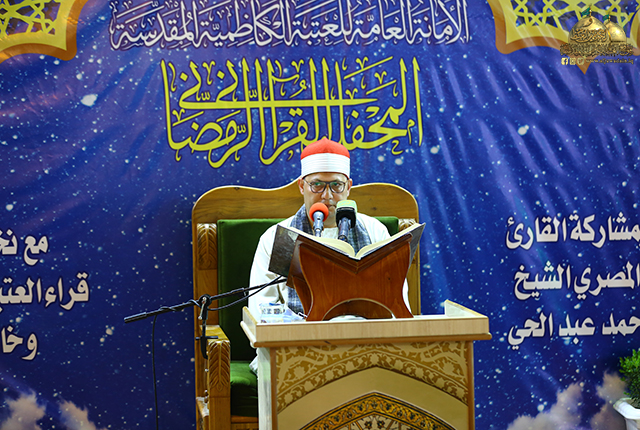لمناسبة حلول شهر رمضان المبارك، موسم الرحمة الإلهية المهداة من ربّ العالمين للعباد لإقالة العثرات، ومغفرة الزلّات والتوبة عن الخطيئات والسيئات، أقامت الأمانة العامة للعتبة الكاظمية المقدسة/ قسم الشؤون الفكرية والثقافية، مركز القرآن الكريم، محفلاً قرآنياً في رحاب الصحن الكاظمي الشريف ضمن البرنامج العبادي والديني السنويّ المخصّص في هذا الشهر الكريم بمشاركة قارئ جمهورية مصر العربية الشيخ أحمد عبد الحيّ، وقرّاء العتبة الكاظمية المقدسة فضلاً عن استضافة قرّاء من خارجها، حيث صدحت حناجرهم بتلاوات قرآنية مفعمة بأجواء إيمانية وروحانية شنّفوا بها مسامع الحاضرين، ومع الالتزام بالإجراءات الصحية والوقائية، كما شهدت جلسات المحفل مشاركة إرشادية من قبل فضيلة الشيخ عماد الكاظمي بيّن خلالها شذرات إيمانية من نفحات الشهر الفضيل.