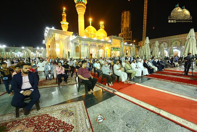 ابتهاجاً بالذكرى العطرة لولادة ثاني الكواكب المحمدية سبط النبي الأكرم "صلى الله عليه وآله وسلم" وسيد شباب أهل الجنة الإمام أبي محمد الحسن المجتبى "عليه السلام"، أقامت الأمانة العامة للعتبة الكاظمية المقدسة/ قسم الشؤون الفكرية والثقافية/ مركز القرآن الكريم محفلاً قرآنياً بهذه المناسبة المباركة في رحاب الصحن الكاظمي الشريف بحضور نائب الأمين العام المهندس سعد محمد حسن، وعدد من أعضاء مجلس الإدارة الموقر، وجمع من زائري الإمامين الكاظمين الجوادين "عليهما السلام" مع تشديد الالتزام بالتعليمات الصحية والوقائية وتحقيق التباعد الجسدي.