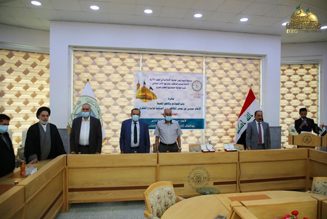 وبهذه المناسبة تتقدّم الأمانة العامة للعتبة الكاظمية المقدسة متمثلة بأمينها العام خادم الإمامين الكاظمين الجوادين الدكتور حيدر حسن الشمّري، وأعضاء مجلس إدارته الموقّر بالشكر والتقدير إلى الجامعة الإسلامية في النجف الأشرف واللجان العلمية والتنظيمية وذلك لاهتمامها بفكر وتراث الإمامين الكاظمين "عليهما السلام" وتشجيعها الكفاءات والمواهب العلمية والأكاديمية، حين تسلمت (٧٦ بحثاً) أجيز منه (٥٠ بحثاً) للتنافس على الجائزة، وكذلك تهنئة جميع الباحثين الفائزين والمشاركين من دولة: ( العراق، وبريطانيا، وتونس، وسوريا، ولبنان، وإيران، ومصر، والبحرين، والجزائر) متمنين للجميع دوام التوفيق والسداد.