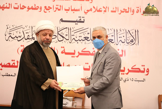 وبهذه المناسبة المباركة وبرعاية كريمة من قبل خادم الإمامين الكاظمين الجوادين، الأمين العام للعتبة الكاظمية المقدسة الدكتور حيدر حسن الشمّري، أقامت الأمانة العامة للعتبة الكاظمية المقدسة/ قسم الشؤون الفكرية والثقافية، في رواق سيدنا عبد الله بن عبد المطلب "عليه السلام" الندوة الفكرية النسوية تحت شعار: ( المرأة والحِراك الإعلامي أسباب التراجع وطموحات النهوض ) وتكريم الفائزات بمسابقة القصة القصيرة، بحضور نائب الأمين العام للعتبة الكاظمية المقدسة المهندس سعد محمد حسن، وعضو مجلس الإدارة والمُشرف على قسم الشؤون الفكرية والثقافية المهندس جلال علي محمد، ونخبة من الشخصيات العلمية والأكاديمية، وممثلي الأقسام الفكرية والثقافية والإعلامية في المؤسسات الحكومية.