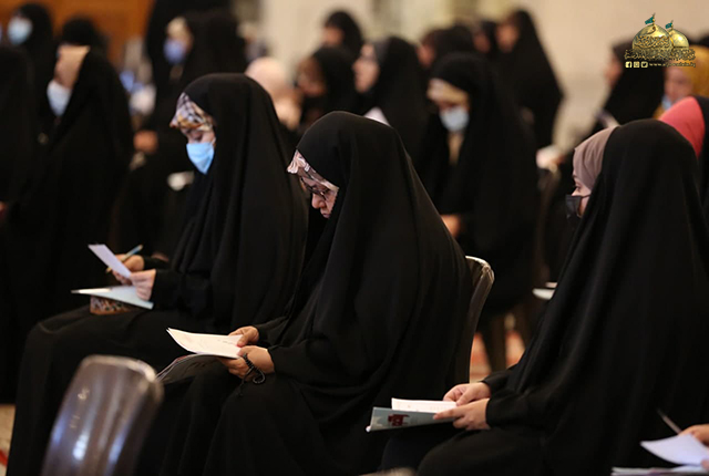 استهل الحفل بتلاوة من الذكر الحكيم شنّف بها مسامع الحضور قارئ العتبة المقدسة الخادم فراس الطائي، بعدها قراءة سورة الفاتحة المباركة ترحماً على أرواح الشهداء وقراءة أنشودة الفردوس، أعقبتها كلمة الأمانة العامة للعتبة الكاظمية المقدسة وألقاها نائب أمينها العام جاء فيها: (اهتمت الشريعة الإسلامية اهتماماً كبيرا بالمرأة وبمكانتها في المجتمع، وبينت مقامها ودورها في التربية والتعليم ولم يغبن حقها القرآن الكريم بل جعلها حاضرة مع الرجل وأشار إليها في بعض آياته حينما لم يفرّق الله تعالى بين الذكر والأنثى في العمل والجزاء، وجعل سبحانه وتعالى التقوى مقياس الجزاء.. وبشر الله تعالى المؤمنين نساءً ورجالا بقوله: ﴿ فَاسْتَجَابَ لَهُمْ رَبُّهُمْ أَنِّي لَا أُضِيعُ عَمَلَ عَامِلٍ مِنْكُمْ مِنْ ذَكَرٍ أَوْ أُنْثَى بَعْضُكُمْ مِنْ بَعْضٍ ﴾.. فالحياة لا تستقيم إلا بتكاتف الرجل والمرأة معاً وكلاهما يكمل الآخر، كلٌّ في دائرة اختصاصه.