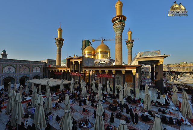 ضريح الإمامين الكاظمين يتشح بالسواد إعلاناً للحِداد
