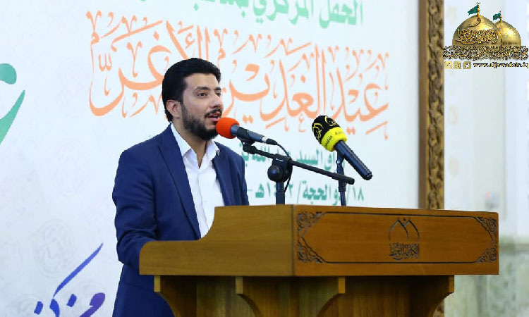 وأضاف: إن الحديث عن يوم الغدير الأغر إنما هو حديثٌ عظيم مُشرق ليوم من أيام التأريخ الإسلامي لما لهُ من علاقة وثيقة بمقام وفضل أمير المؤمنين علي بن أبي طالب "عليه السلام" بصورة عامة والتأكيد على إمامته بالمسلمين بصورة خاصة، وهل هناك مناسبةٌ أعظم من هذه المناسبة التي لها علاقة بالعقيدة الإسلامية والحفاظ على تعاليم الشريعة المقدسة بعد رحيلِ النبي "صلى الله عليه وآله وسلّم" بما لا يخفى على أحد من المسلمين وغيرهم تلك العلاقة الوثيقة التي لا تفترق بين النبوة والإمامة وما كان يبذله النبي "صلى الله عليه وآله وسلّم" من جهودٍ كبيرة طيلة حياته الشريفة في بيان ذلك للمُسلمين كما أمره الله تعالى فكان "صلى الله عليه وآله وسلّم" يؤكد في مناسباتٍ كثيرةٍ ولايتهُ للأمة وبيان فضله ومقامه وعدم مساواة غيره له بذلك وأنه مقياس معرفة الحقّ فهو مع الحقّ والحقّ معه يدور حيثما دار فلا يفترق أحدهما عن الآخر أبداً، ولو رجعنا إلى صفحات التأريخ لرأينا في ذلك موارد ومواقف متعددة فكان الأمر مقترناً ببيان ذلك للناس منذُ الأيامِ الأولى للبعثة النبوية الشريفة والسعي إلى تأسيس الدولة الإسلامية وما يتعلق بها وهذا ما ذكرتهُ المصادر التأريخية والحديثية وخصوصاً الحديث المشهور بحديث "يوم الدار" .. ).