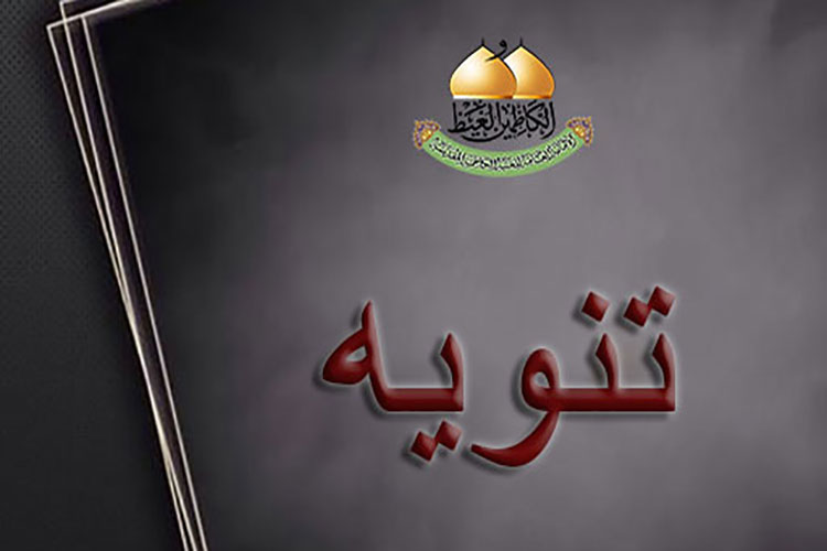 وردتنا معلومات عن قيام ضعاف النفوس باستغلال حاجة المواطنين الكرام للعمل أو التعيين بسبب الظروف المعيشية الراهنة وادعائهم ضمان التعيين في العتبة الكاظمية المقدسة مقابل مبلغ من المال.. وإننا في الوقت الذي ندين هذا التصرف اللاأخلاقي تؤكد الأمانة العامة للعتبة الكاظمية المقدسة على المواطنين باتباع الطريق القانوني السليم للحصول على فرصة عمل دون سواه وعدم الانجرار للسلوكيات المنحرفة التي تصدر من ضعاف النفوس بالنصب والاحتيال واستغلال حاجة الناس إلى فرصة عمل.. كما تؤكد على الاحتفاظ بحقها في ملاحقة هذه الفئة ومحاسبتهم وفق الشرع والقانون، ونهيب بالمواطنين الكرام توخي الحيطة والحذر من التعامل مع هؤلاء والتبليغ عنهم لدى الجهات الأمنية لمحاسبتهم وردعهم.. لذا اقتضى التنويه.