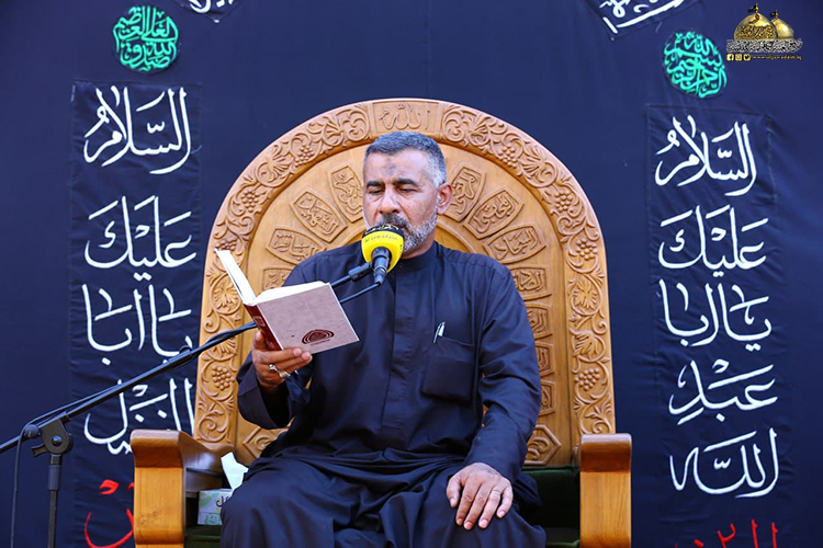 استهلت المراسم بتلاوة آيٍ من الذكر الحكيم للقارئ الشيخ عامر الخفاجي، بعدها ارتقى المنبر فضيلة الشيخ عبدالله الكعبي لقراءة (المقتل الحُسيني) وسرد القصة الكاملة لواقعة الطف الأليمة، وكيف طلعت في ذلك اليوم رؤوس الأسنّة والرماح والأحقاد وهي مشرعة لتلتهم جسد وريث الرسالة وحامل راية القيم السامية الإمام الحسين وأهل بيته وأصحابه الأبرار "عليهم السلام"، حينها ضج الحاضرون بالنحيب والبكاء وذرفوا الدموع حزنا وألماً على ما جرى من مأساة وحيف وظلم على أهل بيت العصمة "عليهم السلام".