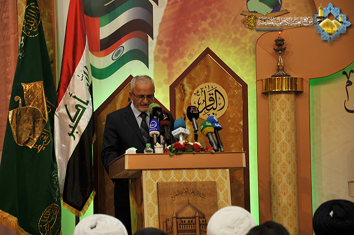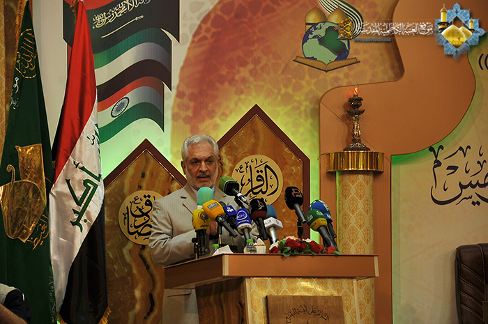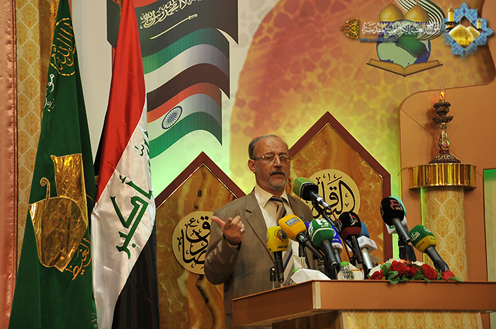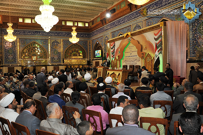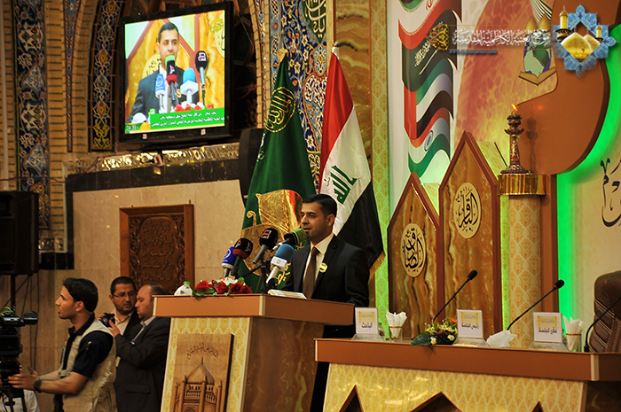 وأضاف قائلاً: إننا في موقع المسؤولية الشرعية والتربوية نحرص على أن تأخذ هذه البحوث القيّمة، وهذه الجهود الكريمة مجالها العملي في المجتمع، لتجسد فكر أهل البيت"عليهم السلام" وليكون البناء النفسي والتربوي على أسس المحبة والتعاون والإخلاص في كلّ مفاصل الأمة، وهذه المسؤولية كبيرة تقع على كل فردٍ من أبناء الأمة، لنعكس خلالها الصورة الناصعة لتعاليم القرآن الكريم والعترة الطاهرة، انطلاقاً من هذه المراقد المقدسة التي هي معلماً من معالم الإشعاع الفكري والإنساني..)