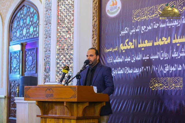 بعدها استمع الحضور إلى كلمة المواكب والهيئات الحُسينية في مدينة الكاظمية المقدسة ألقاها نيابة عنهم الأستاذ مصطفى الصائغ جاء فيها: نشاطركم الآلم والحزن ونحن نؤبن اليوم سماحة المرجع الديني الكبير آية الله السيد محمد سعيد الحكيم "قدس سره" في ذكرى مرور أربعين يوماً على فقده ورحيله. موضحاً مواقفه الوطنية السديدة بعد عام 2003م، ومؤازرته لفتوى العصر، فضلاً عن دوره الكبير الذي أعطى من خلاله صورة بهية عن حوزتنا الشريفة، بأنها حوزة علمية وعملية شاملة، ومرجعيتنا الرشيدة لا تتخذ من الدين وسيلة لتحقيق غايات دنيوية، بل تجسّر روحها وأعمارها سبلاً للغاية المرجوة الحقّة، فضلاً عن مواقفه المشرّفة على الصعيد الاجتماعي ونحن كأبناء المواكب والهيئات الحُسينية نستذكر مناصرته حين أحيا وناصر الشعائر والممارسات الدينية والعبادية بالفعل والقول