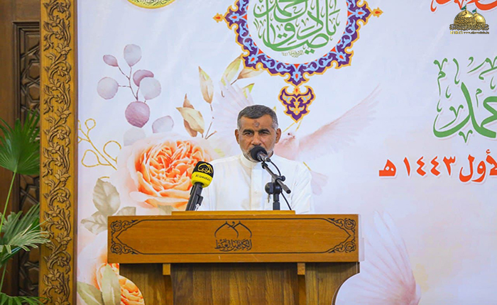 وأضاف: علينا أن نكون امتداداً حقيقياً لهذه الرحمة، من خلال التمسك بالشريعة المقدسة، وجعلها منهجاً راسخاً في واقعنا، لنكون مصداقاً لتلك الأسوة المباركة، ونكون من أتباعه وأنصاره وشيعته العاملين بنهجه الداعين إليه، وعلينا أن نستضيء بأنوار قرآنه الذي أخرج الناس من الظلمات إلى النور، ولنحافظ على نعمة الإسلام التي نحن عليها، ونجعلها زاداً مادياً ومعنوياً في تربية أبنائنا، والحفاظ عليهم من الانحرافات المختلفة، وتحصين شبابنا بروح الإيمان والعقيدة الإسلامية، لنراهم رجال المستقبل الذين يتجلى فيهم حُبّ الدين والوطن، وعلينا أن نعمل بكلّ ما أوتينا من قوة من أجل ترسيخ معالم المحبة والأخّوة والوحدة، كما قال تعالى: (إِنَّمَا الْمُؤْمِنُونَ إِخْوَةٌ فَأَصْلِحُوا بَيْنَ أَخَوَيْكُمْ ۚ وَاتَّقُوا اللَّهَ لَعَلَّكُمْ تُرْحَمُونَ)، وعلينا بالتواصل والتعاون للحفاظ على بلدنا وأبنائنا وخيراتنا كلها، والدفاع عن مقدساتنا الإسلامية، وبذل الجهود من أجل التعريف بها في مناهجنا التعليمية، وندواتنا ومجالسنا ومحافلنا وديمومة المطالبة بالحقوق المشروعة فيها، وخصوصاً القدس الشريف أولى القبلتين وثاني الحرمين، فلا نرضخ لأي دعوة ظاهرة أو باطنة للتنازل أو التنزُّل عن هذه الحقوق المقدسة بأسباب دنيوية واهية.