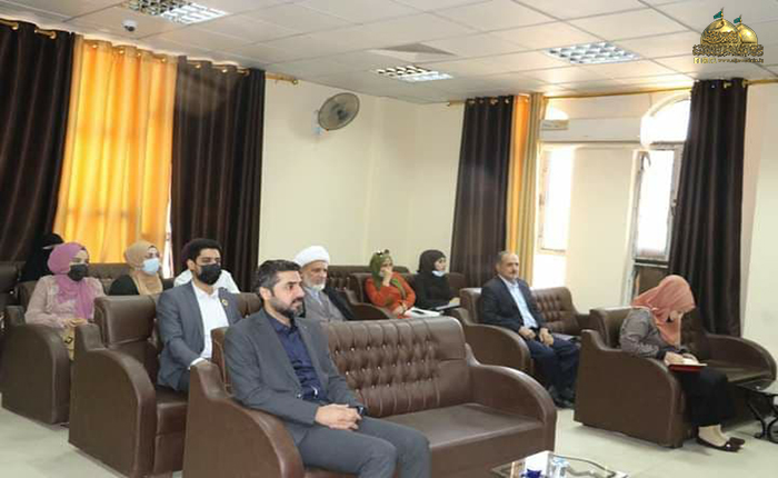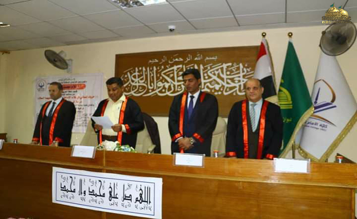 وفد العتبة الكاظمية المقدسة يحضر مناقشة رسالة الماجستير الموسومة (حروف المعاني في كتاب الإمامين الجوادين "عليهما السلام")