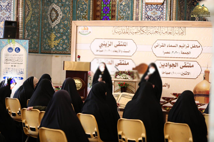 نظمت وحدة الإرشاد الديني والشؤون القرآنية النسوية التابعة لمركز القرآن الكريم في العتبة الكاظمية المقدسة وبالتعاون مع دار القرآن الكريم في العتبة الحسينية المقدسة/ وحدة النشاط القرآني النسوي محفل تراتيل السماء، في رحاب رواق السيدة آمنة بنت وهب "عليها السلام" في الصحن الكاظمي الشريف، والذي استضاف في جلسته نخبة من السيدات الفاضلات من قارئات وحافظات العتبة الحسينية المقدسة.