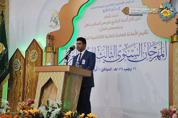 اختتمت فعاليات المهرجان السنوي الثالث للشعر العربي، الذي أقامته الأمانة العامة للعتبة الكاظمية المقدسة، وقد شهدت قاعة مضيف الإمامين الجوادين"عليهما السلام" القراءات الشعرية والتي توزعت بواقع جلستين في الفترة الصباحية والمسائية، حيث ألقى الشعراء المشاركون قصائد سلطوا فيها الضوء على السيرة العطرة لأئمة البقيع"عليهم السلام" ومناقبهم المباركة ودورهم الريادي في أداء رسالتهم السماوية من خلال الصور الإبداعية والقصائد الشعرية الهادفة. واختتم حفل المهرجان بتوزيع الشهادات التقديرية والدروع على الشعراء المشاركين وأعضاء اللجنة المنظمة للمهرجان من قبل الأمين العام للعتبة الكاظمية المقدسة أ.د "جمال الدباغ".