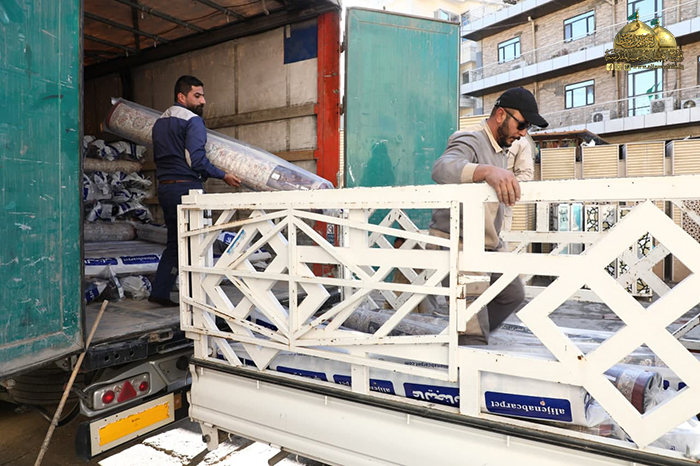 تجديد أطقم السجاد والفرش في أرجاء الصحن الكاظمي الشريف