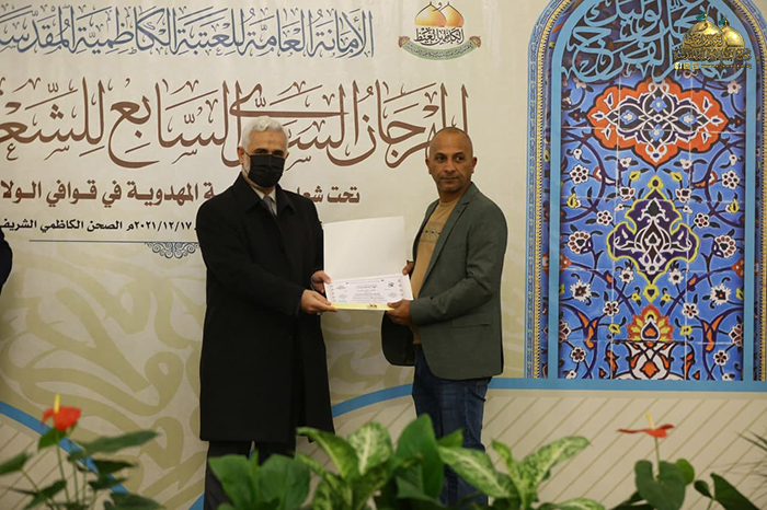 وكان مسك ختام فعاليات هذا المهرجان توزيع الدروع والشهادات التقديرية على الشعراء المشاركين، والجنة المنظمة للمهرجان والشعراء والرواد الذين خدموا في العتبة المقدسة فضلاً عن ضيف المهرجان الدكتور محمد حسين آل ياسين رئيس المجمع العلمي العراقي، وسط تطلعات الأمانة العامة للعتبة الكاظمية المقدسة بأن يكون هذا المهرجان والمهرجانات القادمة بإذنه تعالى مناسبةً لتكريس وتجذير المبادئ السامية التي دعا إليها أهل البيت "عليهم السلام" فضلاً عن توظيف الشعر العربي لنشر الأخلاق والعقائد وترسيخ الثقافة المستندة إلى لغة القرآن الكريم، وتعزيز لغة الضاد بالنتاجات الأدبية.