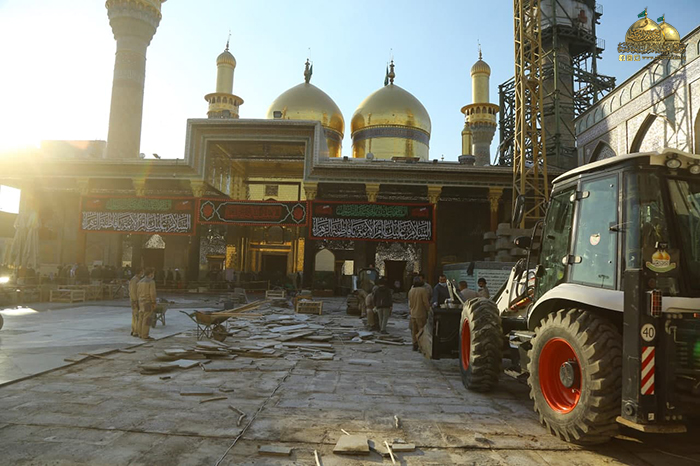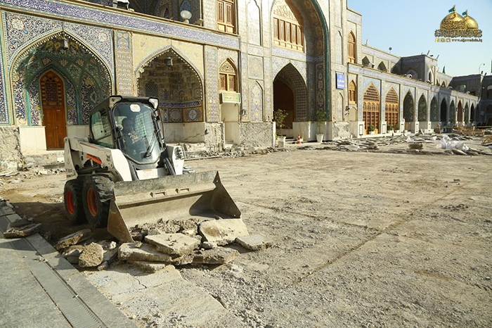 وشهدت أولى خطوات المشروع الموافقة على التصاميم النهائية، وتقديم دراسة وافية لموقع التنفيذ، وإزالة طبقة الإكساء القديم ورفع المرمر لتبدأ بعدها مرحلة المعالجات وحفر المسارات والأنفاق الجديدة على محيط الصحن القديم والطارمات، والتي تتضمن منظومة تجهيز الطاقة الكهربائية، ومنظومة الإنارة، ومنظومة التبريد المركزي، ومنظومة مياه الشرب (RO)، ومنظومة مياة الأمطار، ومنظومة إطفاء الحريق، ومنظومة الاتصالات، ومنظومة الكاميرات والصوتيات، وستكون المرحلة اللاحقة إكساء أرضية الصحن الشريف وقواعد القامات والأواوين بالمرمر (الثاسيوس)عالي الجودة وهو ذات المرمر الموجود في الحرم المكي والحرم المدني بإذنه تعالى، وأن هذا المرمر سيتم التبرع به من قبل الموالين المؤمنين أتباع النبي وآله الأطهار "عليهم السلام" عن طريق "الاتحاد العالمي للمسلمين الخوجه" خدمة للزائرين الكرام.