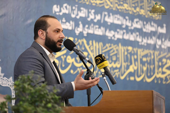 وسط غمرة الأفراح التي تعيشها أمتنا الإسلامية بحلول ذكرى ولادتي أمير المؤمنين وقائد الغر الميامين الإمام علي بن أبي طالب، وحفيده شباب الأئمة الإمام محمد بن علي الجواد "عليهم السلام"، أقامت الأمانة العامة للعتبة الكاظمية المقدسة/ قسم الشؤون الفكرية والثقافية/ مركز القرآن الكريم بالتعاون مع المديرية العامة للتوجيه العقائدي في الحشد الشعبي محفلاً خاصاً في رواق سيدنا عبد الله بن عبد المطلب "عليه السلام"، ضمن فعاليات محفل ترانيم السماء القرآني الأسبوعي بحضور عضو مجلس الإدارة المهندس جلال علي محمد، وسماحة السيد محمد الحيدري "دامت توفيقاته" مدير التوجيه العقائدي في الحشد الشعبي، وكوكبة من الأساتذة والمختصين بالشأن القرآني، وجمع غفير من زائري الإمامين الكاظمين الجوادين "عليهما السلام".