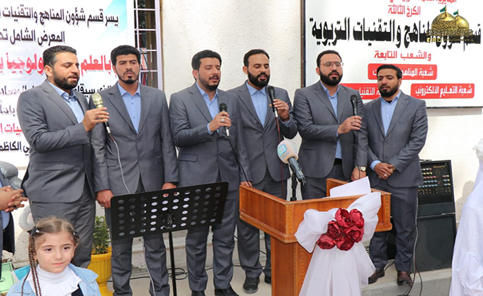 بتوجيه من قبل خادم الإمامين الكاظمين الجوادين، الأمين العام للعتبة الكاظمية المقدسة الدكتور حيدر حسن الشمّري لبى وفد العتبة المقدسة في قسمي الشؤون الفكرية والثقافية، والعلاقات العامة، دعوة قسم شؤون المناهج والتقنيات التربوية في المديرية العامة لتربية محافظة بغداد/ الكرخ الثالثة لحضور المعرض الشامل الذي أقامه القسم في مدرسة (شهداء جسر الأئمة) في قاطع مدينة الكاظمية المقدسة، وحضر حفل افتتاح فعاليات المعرض الذي شاركت في إحيائه فرقة الجوادين للإنشاد الديني، مدير تربية الكرخ الثالثة الدكتور سعد صابر عباس الربيعي، وعدد من الملاكات والتربوية التعليمية، وطلبة المدارس المشاركة في هذا المُلتقى العلمي، وجرى خلال تلك الفعاليات عرض نتاجات الطلبة والتلاميذ والهيئات التعليمية والتدريسية التي تميزت بالإبداع والحداثة والابتكارات الجديدة والمنوعة.