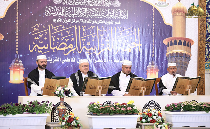شهر رمضان المبارك، شهر الخير واليُمن والمغفرة، الذي قال فيه رسول الله "صلى الله عليه وآله": (أيّها النّاس أنّه قد أقبل إليكم شهر الله بالبركة والرحمة والمغفرة، شهر هو عند الله أفضل الشّهور، وأيّامه أفضل الأيّام، ولياليه أفضل اللّيالي، وساعاته أفضل السّاعات، هو شهر دُعيتم فيه الى ضيافة الله، وجُعلتم فيه من أهل كرامة الله)، حيث استقبل رواق سيدنا عبد الله بن عبد المطلب "عليه السلام" في رحاب الصحن الكاظمي الشريف هذا الشهر الفضيل، وازدانت تلك الأجواء بعبق الإيمان وربيع القرآن، إذ أقامت الأمانة العامة للعتبة الكاظمية المقدسة/ قسم الشؤون الفكرية والثقافية ـ مركز القرآن الكريم جلسات الختمة القرآنية المرتلة بمشاركة قارئ العتبة الرضوية المقدسة الشيخ سعيد طوسي، وقرّاء العتبة الكاظمية المقدسة واستضافة مجموعة من قرّاء المؤسسات والمراكز القرآنية في بغداد.