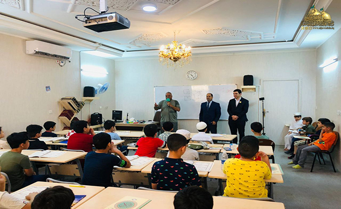 في الوقت ذاته زار الدكتور العامري القاعات الدراسية للمركز، وتم الاطلاع على الدورات التخصصية والمناهج الدراسية والتدريبية من خلال شرح موجز قدّمه مدير المركز أشار فيه إلى استراتيجية الأمانة العامة للعتبة الكاظمية المقدسة ودعمها اللامحدود في استثمار العطلة الصيفية، وتوفير مستلزمات الدورات كافة من قاعات نموذجية، ووسائل تعليمية وترفيهية، وباصات لنقل الطلبة مجاناً، فضلاً عن استضافة نخبة من الأساتذة الأكفاء لرعاية تلك المواهب القرآنية والتي تجري برعاية مباشرة من خادم الامامين الكاظمين الجوادين "عليهم السلام" الأمين العام للعتبة الكاظمية المقدسة الدكتور حيدر حسن الشمري.