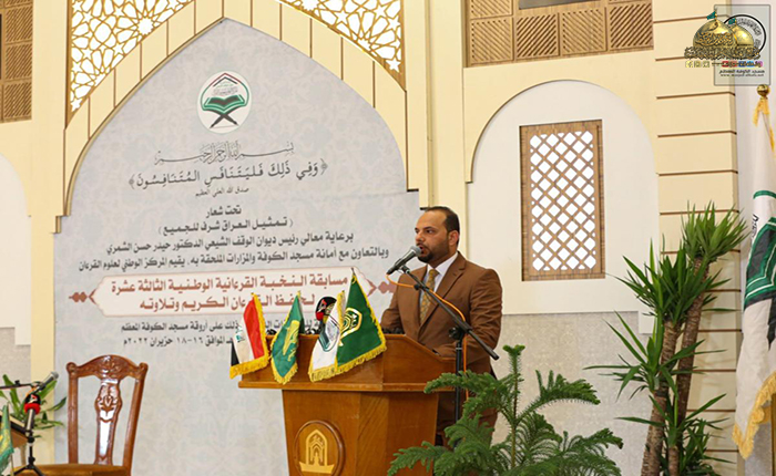 بتوجيهٍ من قبل خادم الإمامين الكاظمين الجوادين الأمينِ العام للعتبة الكاظمية المقدسة الدكتور حيدر حسن الشمّري، شارك عدد من خدام العتبة الكاظمية المقدسة في مركز القرآن الكريم التابع لقسم الشؤون الفكرية والثقافية في فعاليات مسابقة النخبة القرآنية الوطنية للحفظ والتلاوة بنسختها الثالثة عشر التي أقامها المركز الوطني لعلوم القرآن الكريم في ديوان الوقف الشيعي بالتعاون مع أمانة مسجد الكوفة والمزارات الملحقة به تحت شعار: (تمثيل العراق شرف للجميع)، والتي حضرتها وفود العتبات المقدسة والمزارات الشريفة وعدد من ممثلي الدور والمؤسسات والهيئات القرآنية.