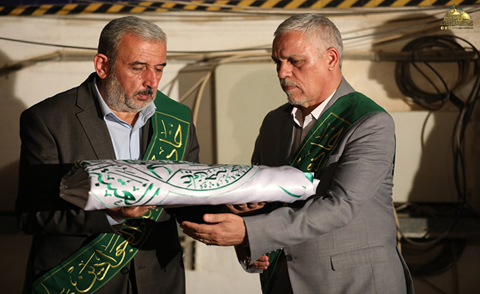 تجددت أفراح محبي أهل بيت النبوة "عليهم السلام" في يوم العهد المعهود، والميثاق المأخوذ والجمع المشهود، يوم إكمال الدين وإتمام النعمة والتنصيب الإلهي، يوم الغدير الأغر الذي أشرقت فيه شمس الحقيقة وتجلّى نور ولاية القيم والمُثل العُليا وتحقيق العدالة الإنسانية بتتويج الوصي الأول بعد النبي الخاتم "صلّى الله عليه وآله " أميراً للمؤمنين وإماماً لهم وعَلماً هادياً للأمة، وبهذه المناسبة العظيمة والذكرى العطرة أقامت الأمانة العامة للعتبة الكاظمية المقدسة المراسم المهيبة لرفع راية عيد الغدير التي أهدتها الأمانة العامة للعتبة العلوية المقدسة التي توجّت بقول الرسول الأكرم "صلّى الله عليه وآله وسلم": (من كنت مولاه فعلي مولاه) فوق سارية باب المراد في العتبة الكاظمية المقدسة، وسط حضور نائب الأمين العام المهندس سعد محمد حسن، وعدد من أعضاء مجلس الإدارة وكوكبة من خدّام العتبة المقدسة وجمع من الزائرين الكرام.