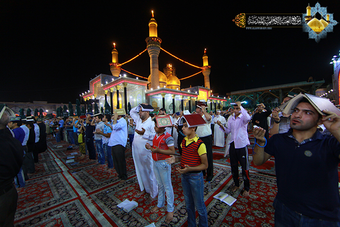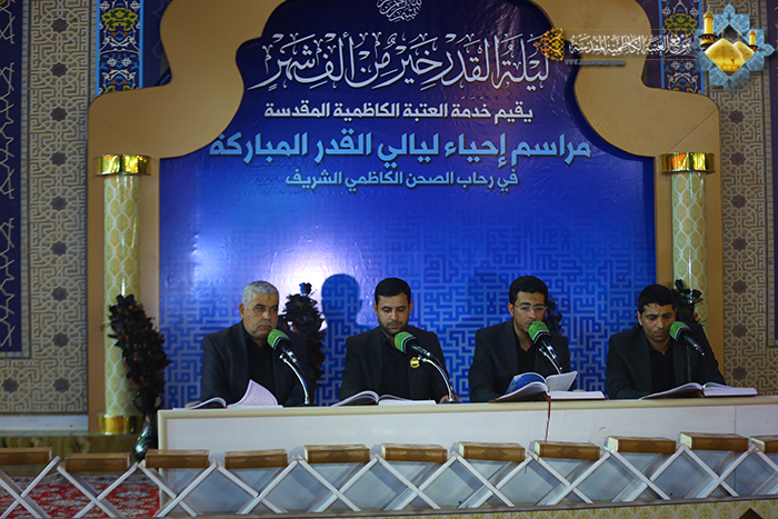 ليال مباركات ترفع فيها الدرجات وتتضاعف فيها الحسنات وتتطلع فيها القلوب والأنفس لتناجي بارئها، مبتهلة بالدعاء لتلتمس فيها من فيض رحمته ومغفرته، وكعادتهم في كل عام أحيا جمع غفير من المؤمنين الموالين أعمال الليلة الأولى من ليالي القدر، التاسع عشر من شهر رمضان المبارك عند مرقدي الإمامين الهمامين موسى بن جعفر ومحمد بن علي الجواد "عليهما السلام" ، حيث شهد الصحن الكاظمي الشريف أجواء إيمانية وروحانية ومراسم استهلت بالتلاوات المعطرة لكتاب الله العزيز والصلوات والنوافل ومحاضرة دينية توجيهية إرشادية لسماحة الشيخ " حبيب الكاظمي" تطرق فيها فضل ليالي القدر المباركة وأعمالها ووجوب إحيائها، كما بيّن مقامها ومكانتها وجزاءها وعظيم منزلتها عند الله عز وجل واصفاً إياها بأنها نعمة من نعم الله على المسلمين، ثم تلا ذلك قراءة للأدعية الواردة عن أهل بيت النبوة "عليهم السلام" في إحياء هذه الليلة وتشمل دعاء رفع المصاحف و دعاء أبو حمزة الثمالي ثم أختتمها كل من القارئ "عبد الكريم قاسم، والحاج همام عدنان، وكرار الكاظمي ، وسجاد أحمد" بقراءة دعاء الجوشن الكبير . ثم ابتهلت هذه الجموع المؤمنة التي غصت بها هذه الرحاب الطاهرة إلى المولى العلي القدير أن يتقبل منها خالص الدعاء والأعمال في هذه الليلة وسائر الليالي والأيام وأن ينعم على بلدنا العراق بالخير والأمن والأمان.