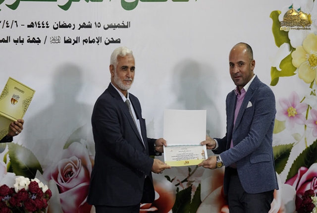 وكانت هناك مشاركة للرادود الحُسيني عمار الكناني بروائع الكلمات والأهازيج الجميلة معبّراً عن الولاء المُطلق لصاحب الذكرى الإمام المجتبى "عليهما السلام" التي أضفت روح البهجة والسرور في نفوس زائري الإمامين الجوادين "عليه السلام"، واختتم الحفل بتكريم نخبة من الأساتذة والتربويين والطلبة المتفوقين في تربية الرصافة الثالثة وذلك دعماً للمتميزين وتشجيع الكفاءات العلمية لدفع عجلة الرقيّ والتقدّم، والعمل على تعزيز روح الانتماء للعراق وهم يتطلعون إلى صناعة مستقبلهم الواعد.