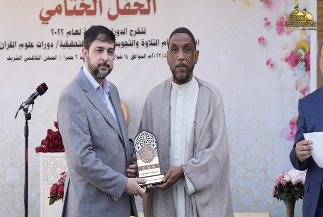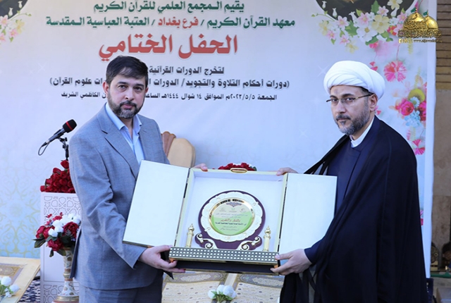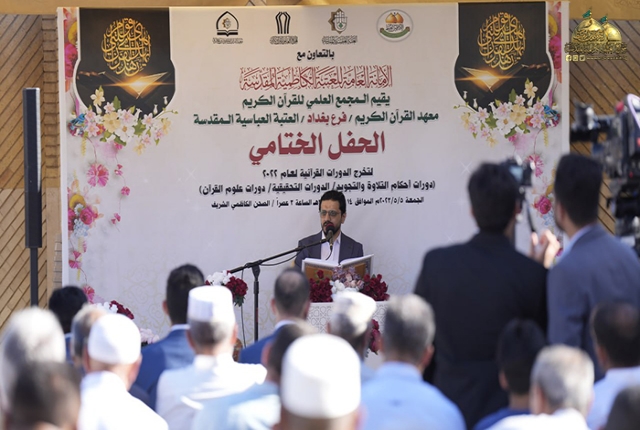 من بقعة الطهر المُفعمة بالقداسة والإيمان من رحاب الإمامين الهمامين موسى بن جعفر الكاظم ومحمد بن علي الجواد "عليهما السلام" استضافت الأمانة العامة للعتبة الكاظمية المقدسة وبالتعاون مع الأمانة العامة للعتبة العباسية المقدسة/ المَجمع العلمي للقرآن الكريم ـ معهد القرآن الكريم فرع بغداد حفل اختتام دورات أحكام التلاوة والتجويد، والدورات التحقيقية، ودورات علوم القرآن الكريم بمشاركة (550) طالب، وبحضور نخبة من ممثلي المؤسسات والروابط القرآنية والمهتمين بالشأن القرآني.
