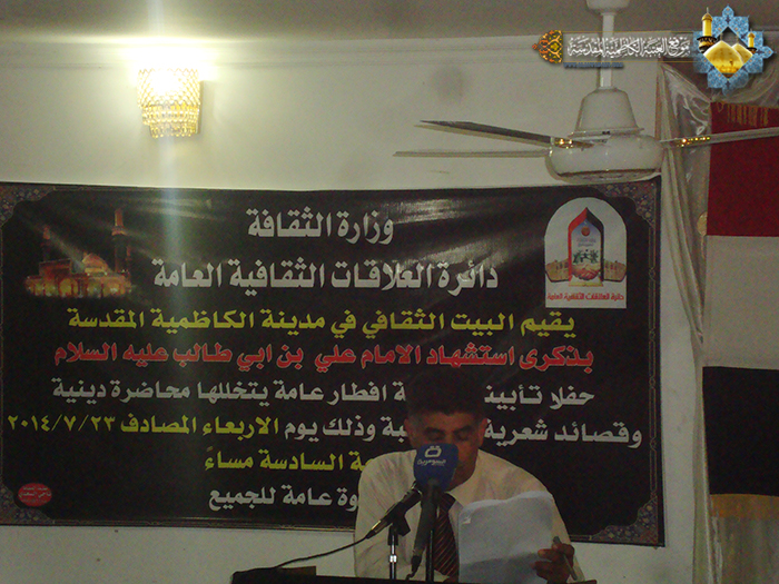ويذكر أن الحفل قد شهد محاضرات دينية وقصائد شعرية استذكرت خلالها السيرة المباركة لأمير المؤمنين "عليه السلام" ودوره الكبير في الملاحم والبطولات التي سطرها للدفاع عن الإسلام .
