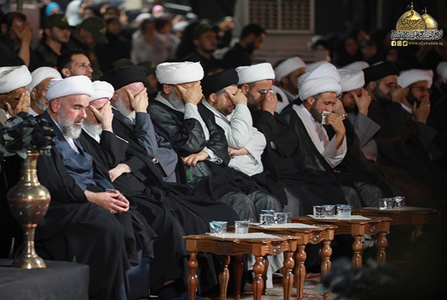 وكانت هناك كلمة للمشروع التبليغي في الحوزة العلمية الشريفة وألقاها مُمثل المرجعية الدينية العليا في مدينة الكاظمية المقدسة سماحة الشيخ حُسين آل ياسين "دامت توفيقاته" فجاء فيها: (لمثل هذا المشهد فليعمل العاملون، ولمثل هذا هَوَتْ أفئدة المؤمنين لسيد المرسلين وآله الطاهرين، لمثل هذا تُقام هذه الزيارات الشريفة والمجالس المنيفة، وتذرف الدموع ويندب النادبون، ويصرخ الصارخون، ويضج الضاجون، ويعج العاجون، لذا فنحن نكرر الدعاء والثناء والشكر للزائرين ولأصحاب العزاء ولمن يخدمهم ويعتني بأمورهم من القائمين على خدمة المشاهد المشرفة العلوية والحسينية والكاظمية والعسكرية والعباسية ومن الجهات الرسمية وغير الرسمية، وفق الله الجميع لمزيد من التشرف بخدمة الزوار ورعايتهم، ويكرر طلبة العلوم الدينية والمبلغون والمبلغات ما قاله المرجع الديني الأعلى سماحة آية الله العظمى السيد علي الحسيني السيستاني "دام ظله الوارف": (أنا خادم لكم ومن يقبلني فهو متفضل عليّ) ليتفضل علينا المؤمنين والمؤمنات بالسؤال والاستفسار ونسأل الله تعالى أن نكون على قدر مسؤولية الإرشاد والتبليغ).