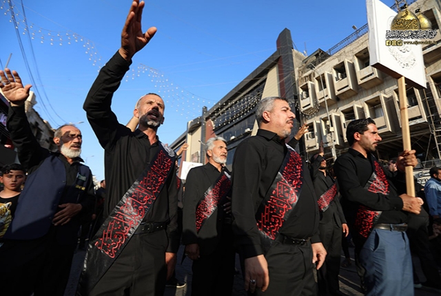 نظّم موكب خدّام أمير المؤمنين في العتبة العلوية المقدسة مسيرة عزائية إحياءً لذكرى استشهاد غصن الشجرة السرمدية الإمام محمد بن علي الجواد "عليه السلام" وكان في استقبال المعزّين ومشاركتهم بهذه المناسبة الأليمة خدّام العتبة الكاظمية المقدسة.