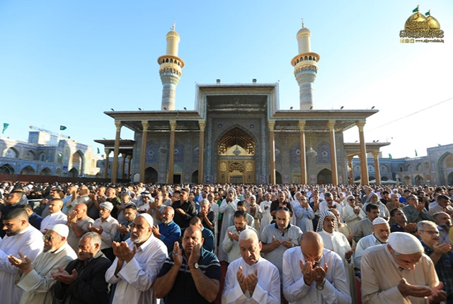 واختتم خطبته بالدعاء بتعجيل فرج مولانا صاحب العصر والزمان الإمام المهدي المنتظر "عجل الله فرجه الشريف" والدعاء للمؤمنين والمؤمنات والمسلمين والمسلمات الأحياء منهم والأموات، ومن دافع عن الدين والمقدسات الذين لبوا فتوى المرجعية الدينية المباركة، والرحمة للشهداء وعوائلهم والشفاء العاجل لجميع الجرحى وأن يجعل بلدنا آمناً، وعيدنا تحقيقاً للغايات المنشودة، ثم تلتها قراءة زيارة سيد الشهداء الإمام الحسين "عليه السلام" من قبل قارئ مآذن الصحن الكاظمي الشريف الشيخ عامر الخفاجي.